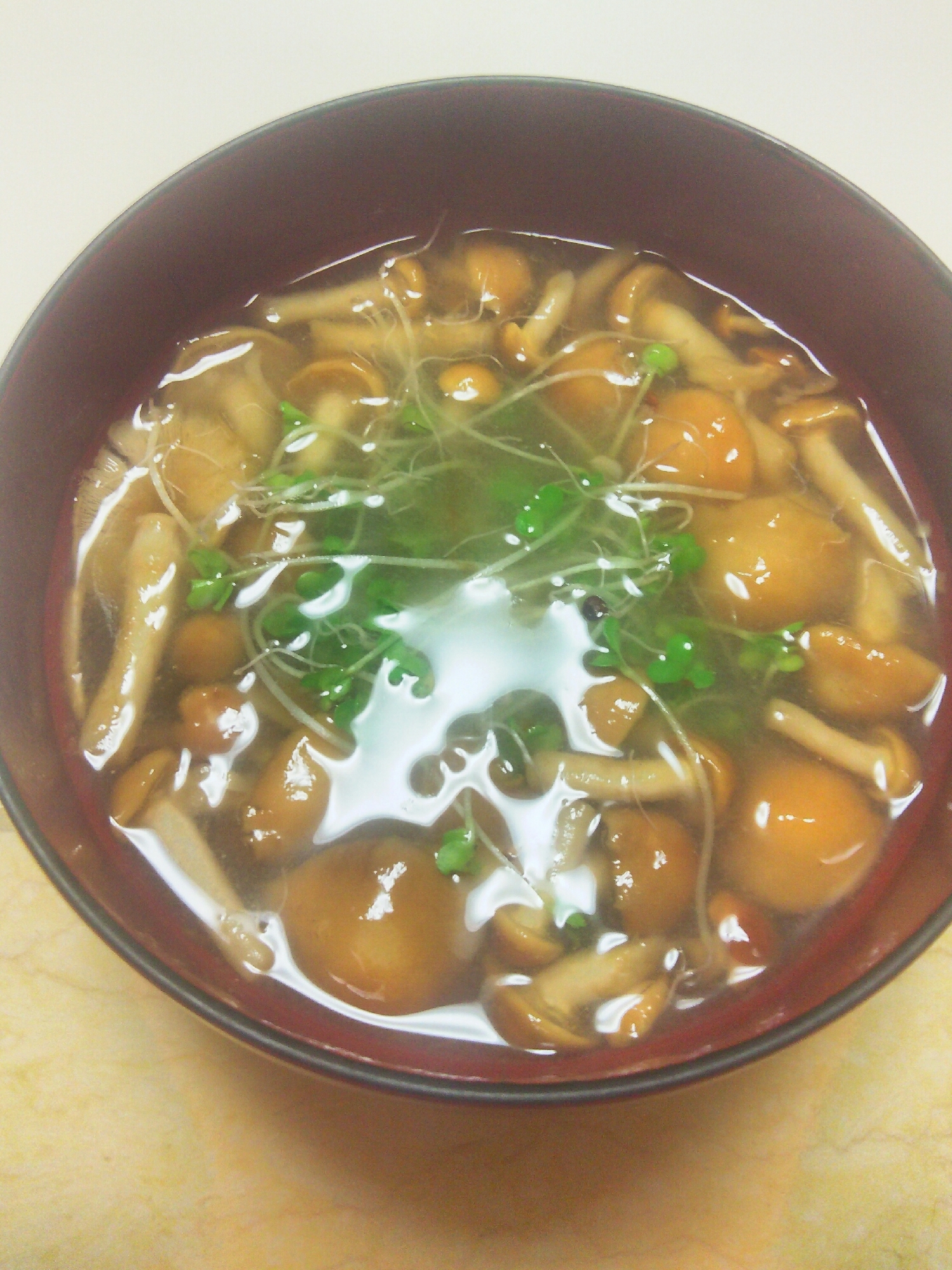 なめことブロッコリースプラウトの味噌汁 レシピ 作り方 By イク9110 楽天レシピ