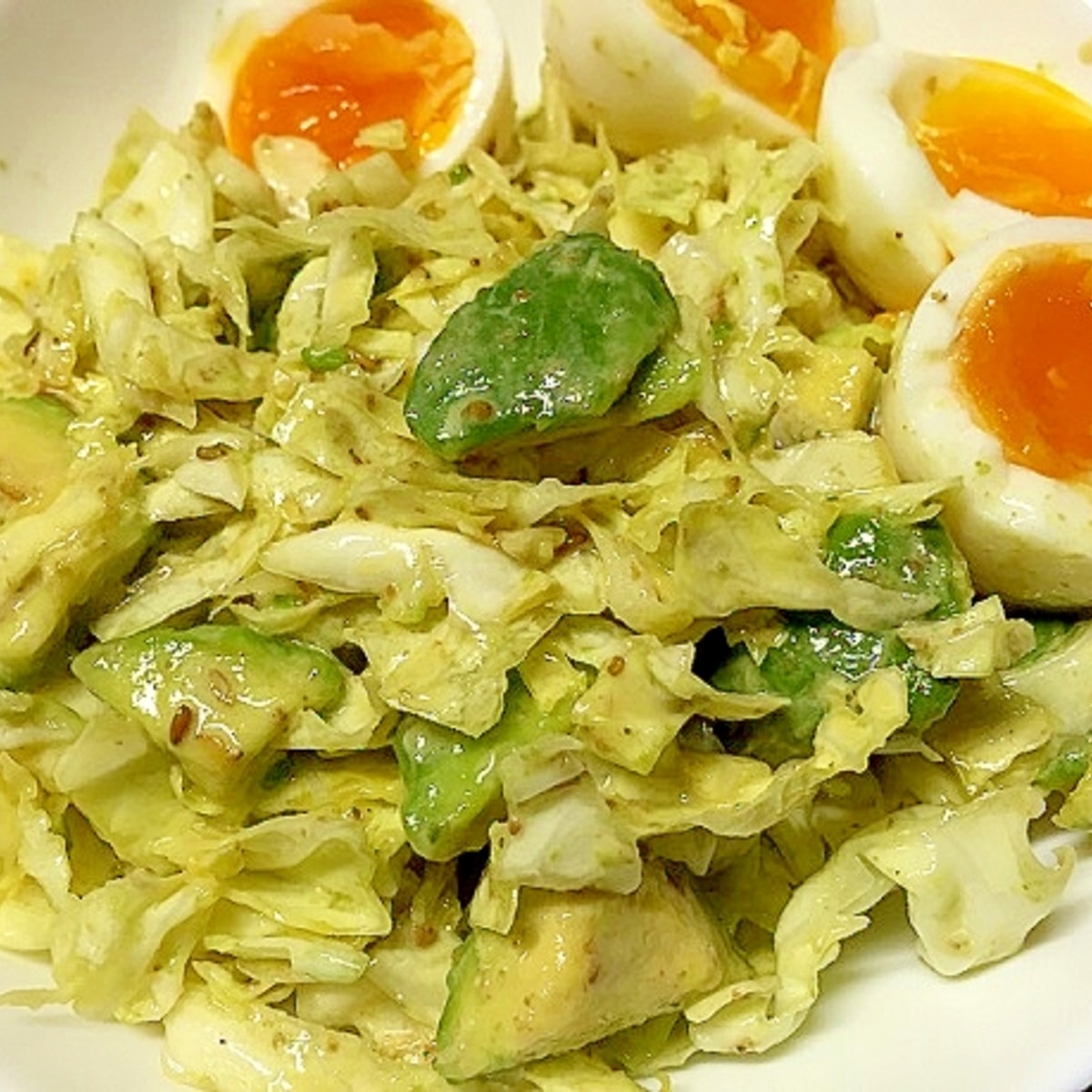 半熟玉子のせアボカドキャベツサラダ レシピ 作り方 By まいまい917 楽天レシピ