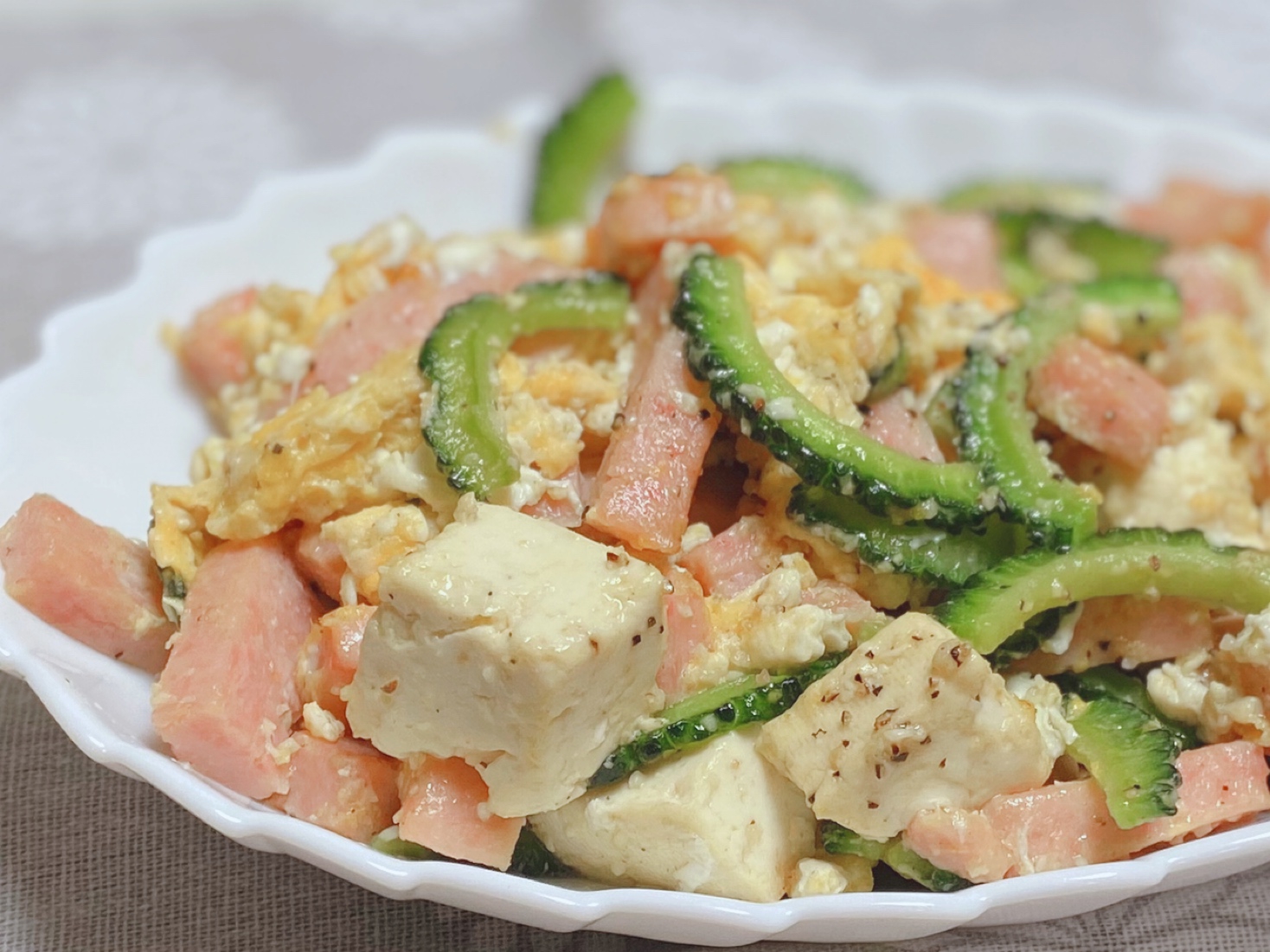 スパムと豆腐のチャンプルー Suzukaの楽うまカフェごはん