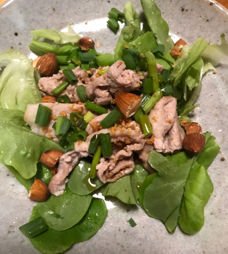 牛肉しゃぶしゃぶサラダ アーモンドスライスのせ 東洋ナッツ食品のごきげんさんブログ