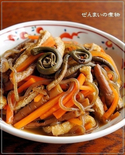 ぜんまいと人参と油揚げの煮物 ぴよの日記