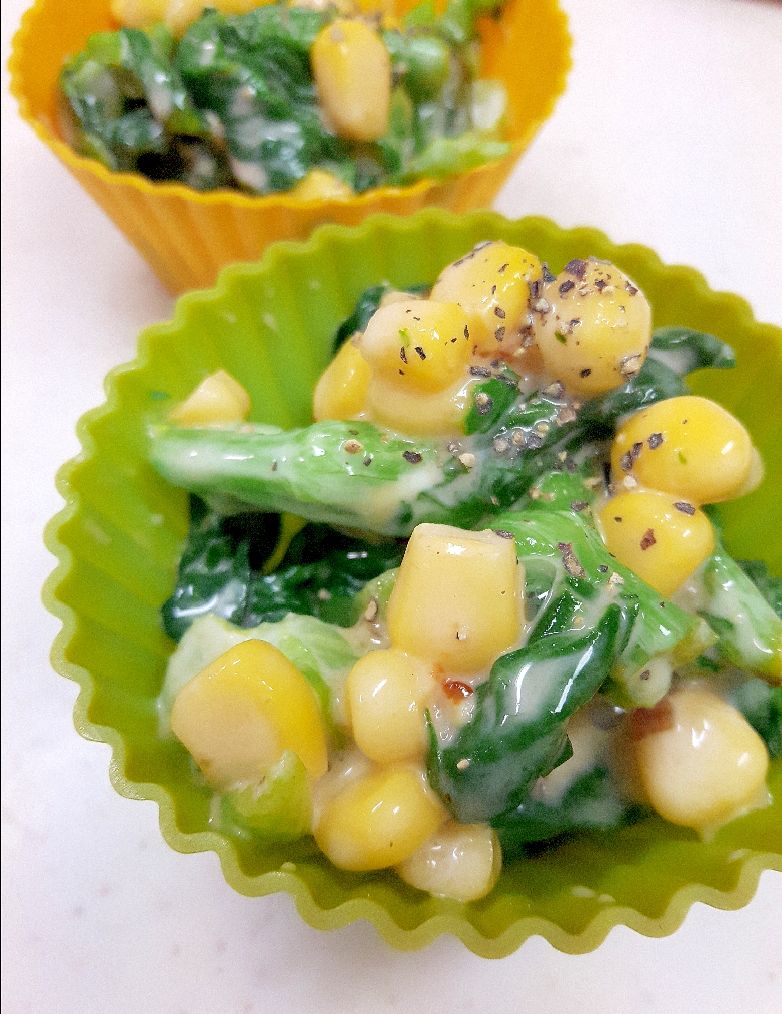 小松菜とコーンのサラダ 週末の作り置きレシピ
