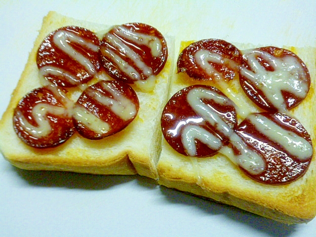食パンでおつまみ ピリ辛サラミのマヨネーズかけ レシピ 作り方 By みずたまsweet 楽天レシピ