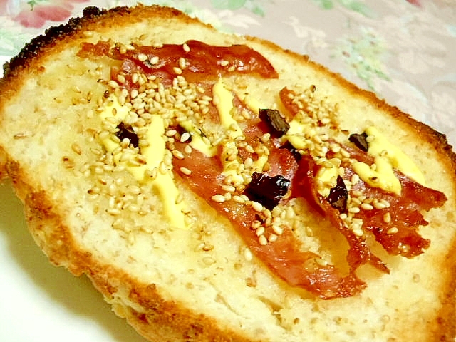 ドライトマトとサラミの大蒜マヨ胡麻トースト レシピ 作り方 By 小太郎1212 楽天レシピ