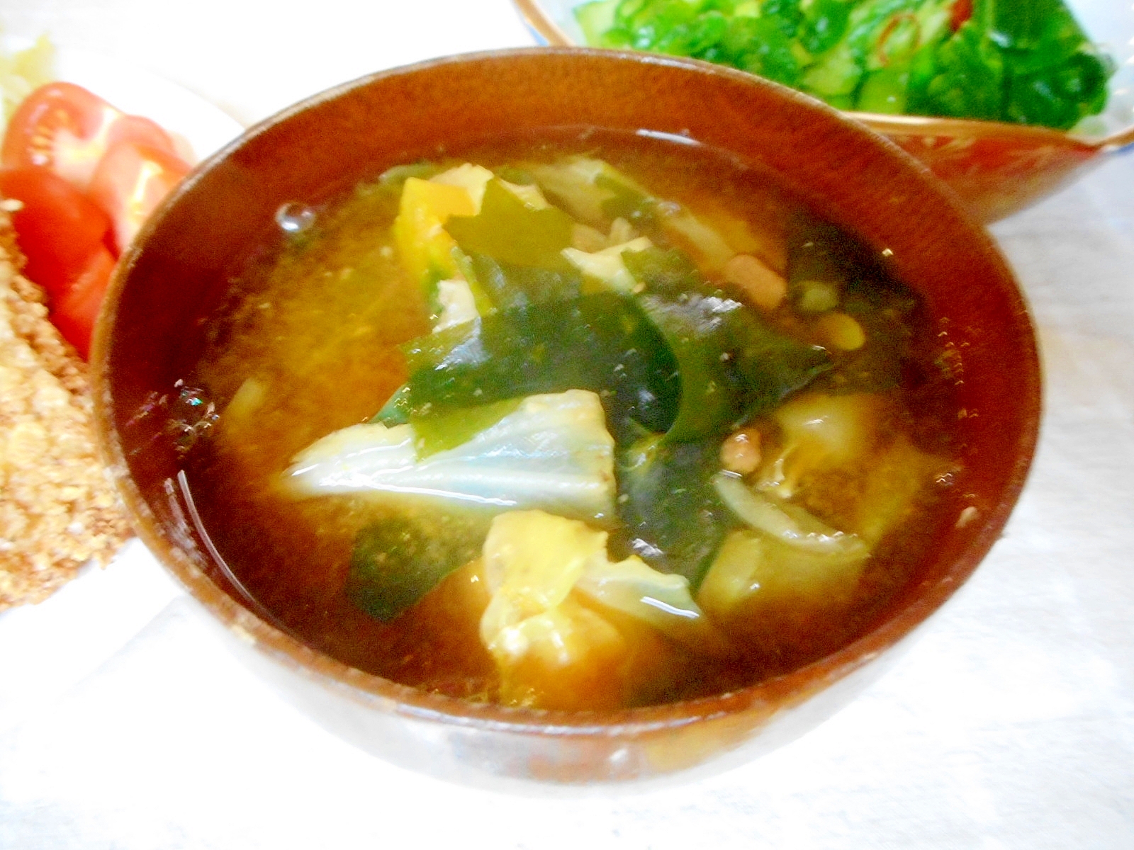 カボチャのわたダシでキャベツとわかめの味噌汁 レシピ 作り方 By Mococo05 楽天レシピ
