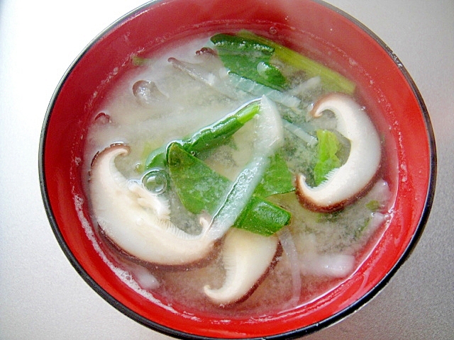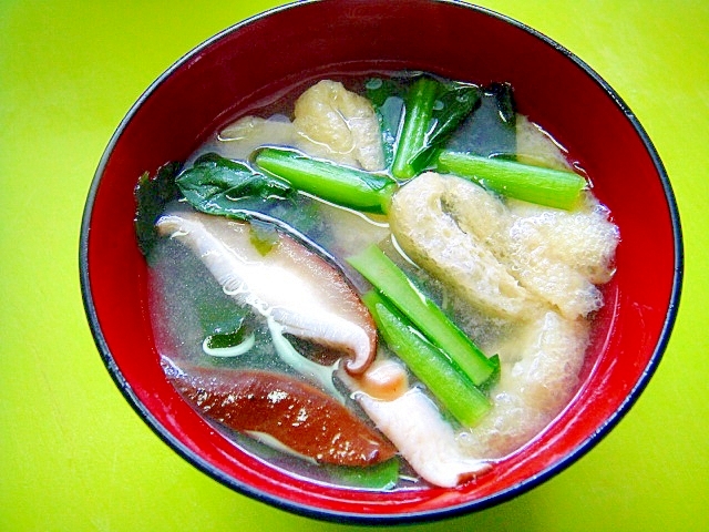 具だくさん 小松菜シイタケと油揚げの味噌汁 レシピ 作り方 By おはぎーちゃん 楽天レシピ