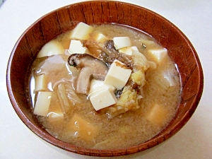 揚げ豆腐 生椎茸 玉ねぎ わかめの味噌汁 ママンヌ家事雑記