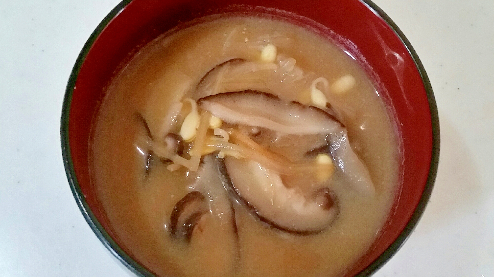 もやしとベーコンと生しいたけの味噌汁