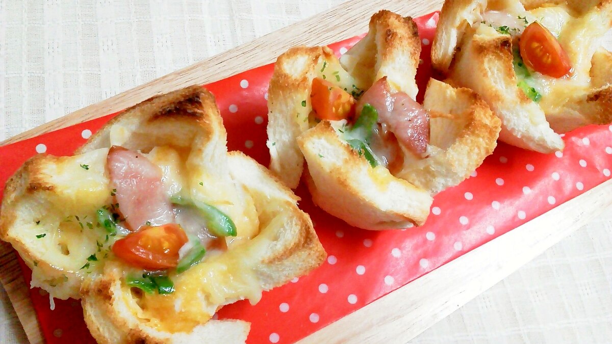 簡単 パーティーに パンのカップでキッシュ風 レシピ 作り方 By Aka Ru 楽天レシピ