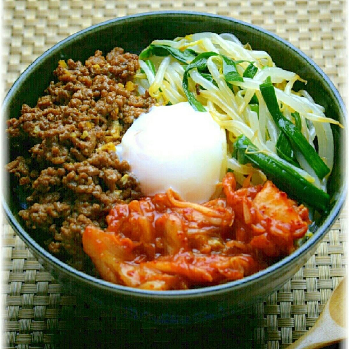 ピリ辛豚肉と三色ナムルのビビンバ レシピ 作り方 By にゃんたろみかん 楽天レシピ