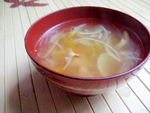 だしの効いた鶏肉と玉ねぎの和風カレースープ
