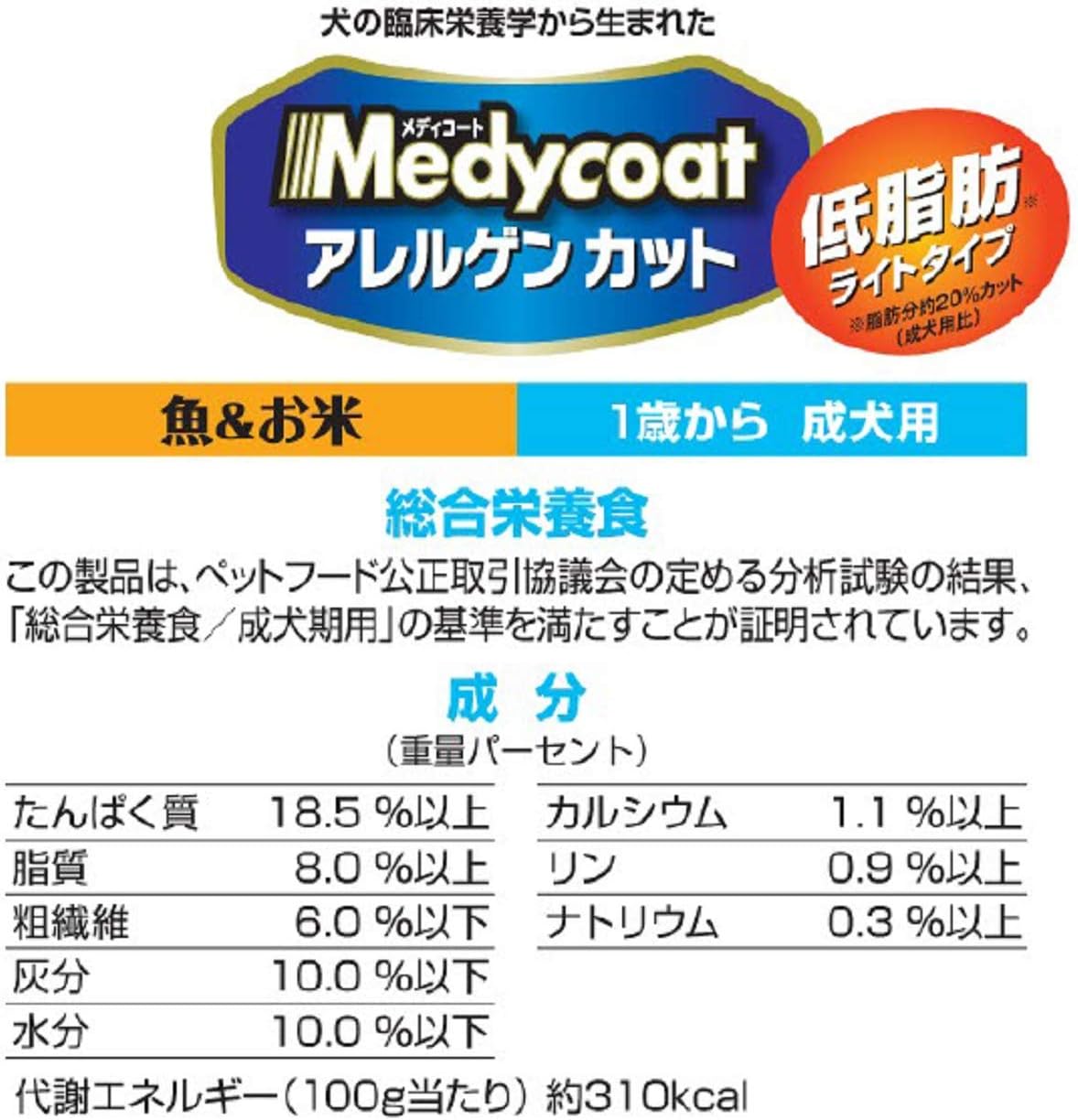 Amazon メディコート アレルゲンカット 魚 お米 ライト 1歳から 成犬用5 4 メディコート ペット用品 通販