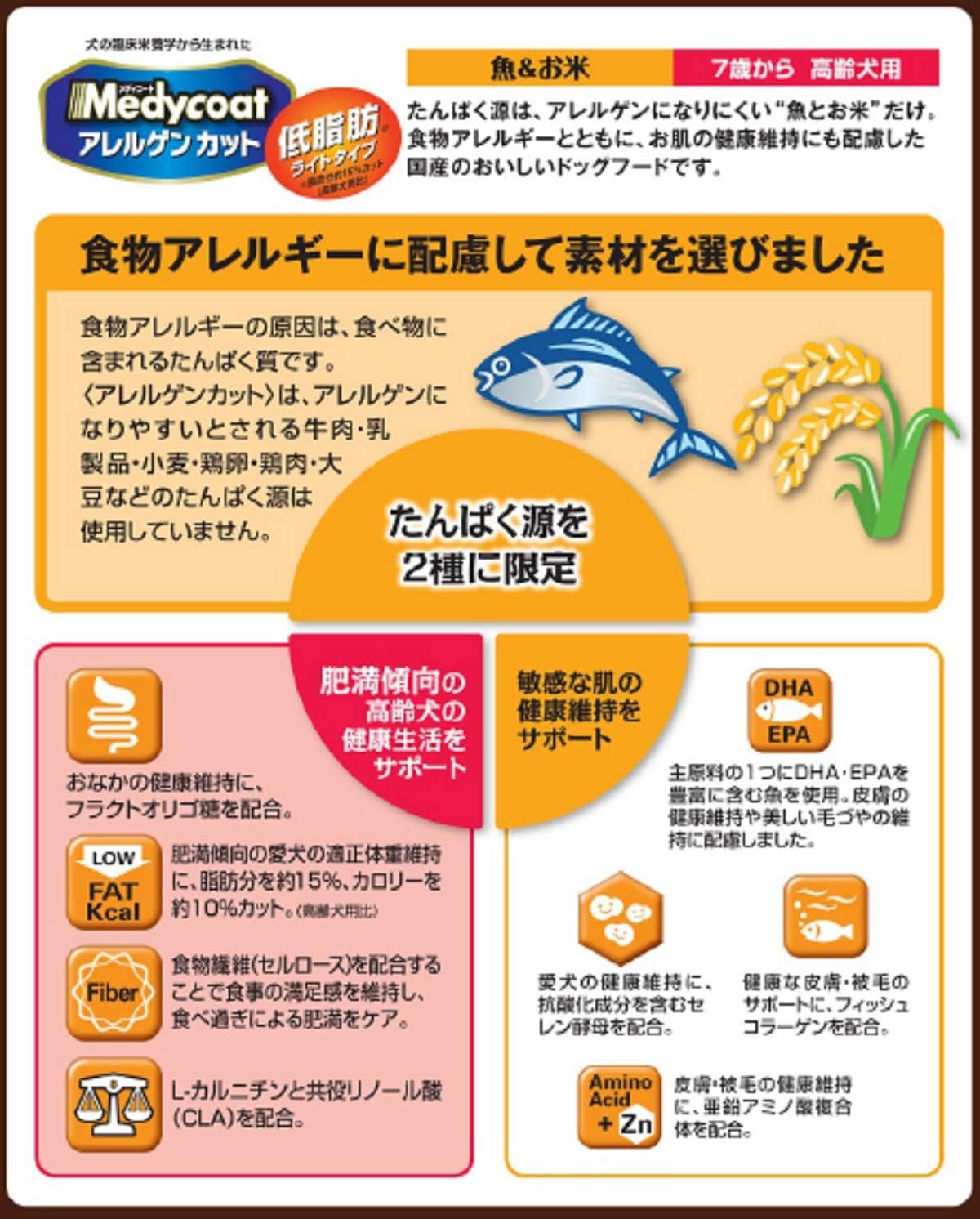楽天市場 メディコート アレルゲンカット 魚 お米 低脂肪ライトタイプ 7歳から 高齢犬用 5 4kg あす楽 ペットゴー 楽天市場店