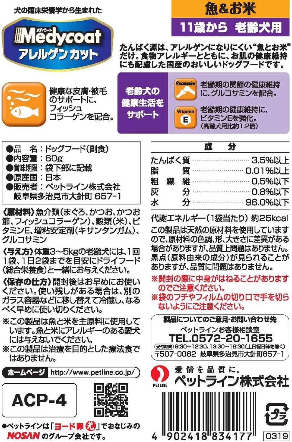 Amazon ペットライン メディコート アレルゲンカット パウチ 魚 お米 11歳から 老齢犬用 60g ドッグフード メディコート ウェット 通販