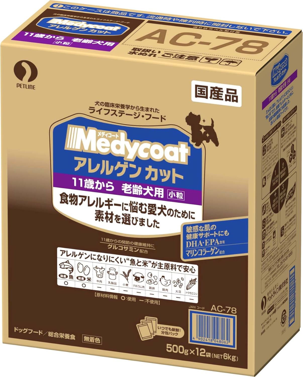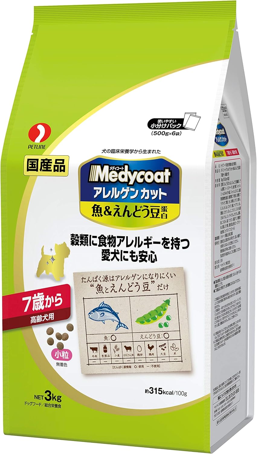 メディコート アレルゲンカット 魚 えんどう豆蛋白 7歳から 高齢犬用 3kg 500g 6袋 メディコート ウェット 通販 Amazon