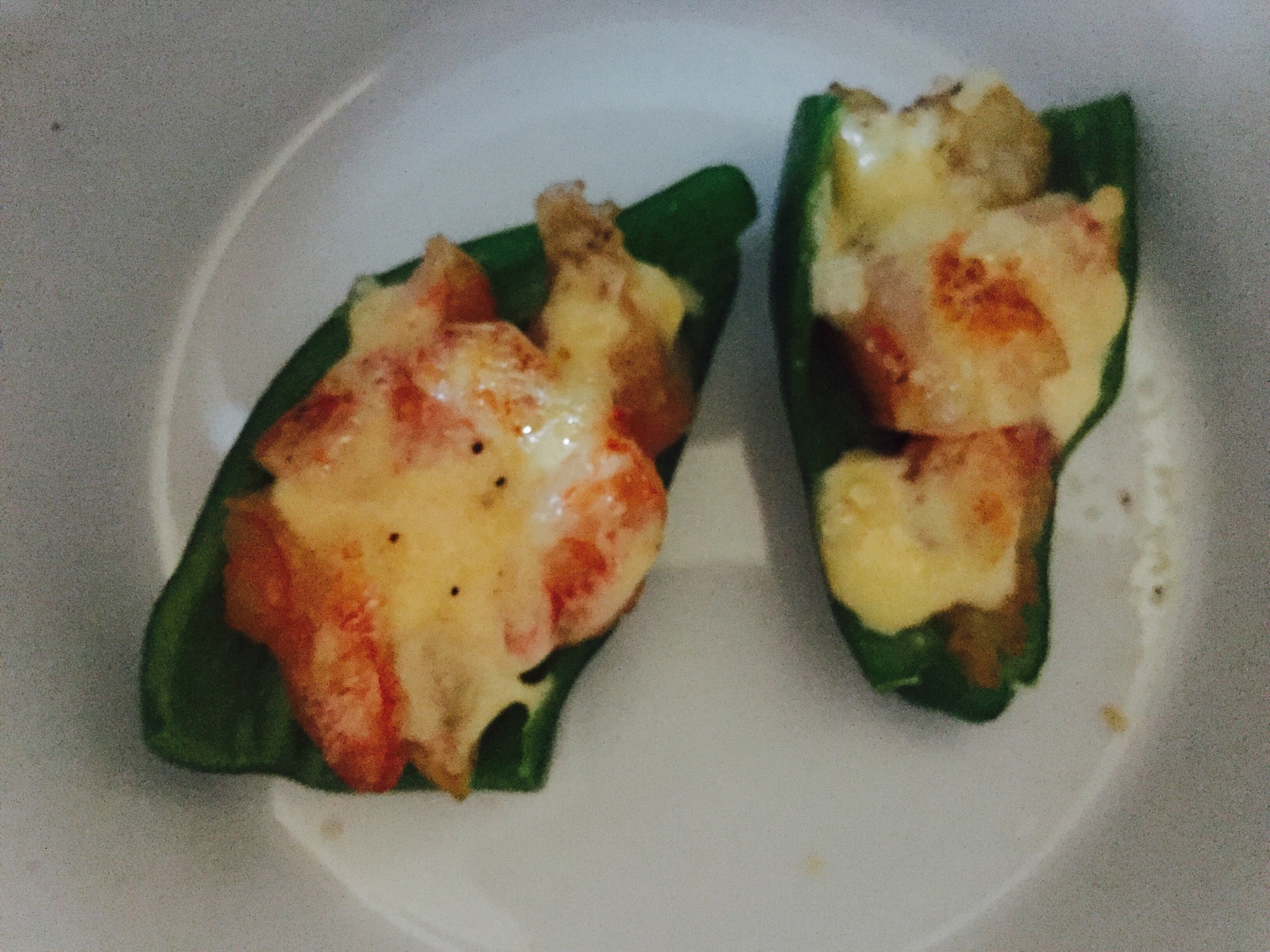 メキシカン料理 甘辛ピーマンの肉詰めチーズ焼きの作り方 トースターレシピ