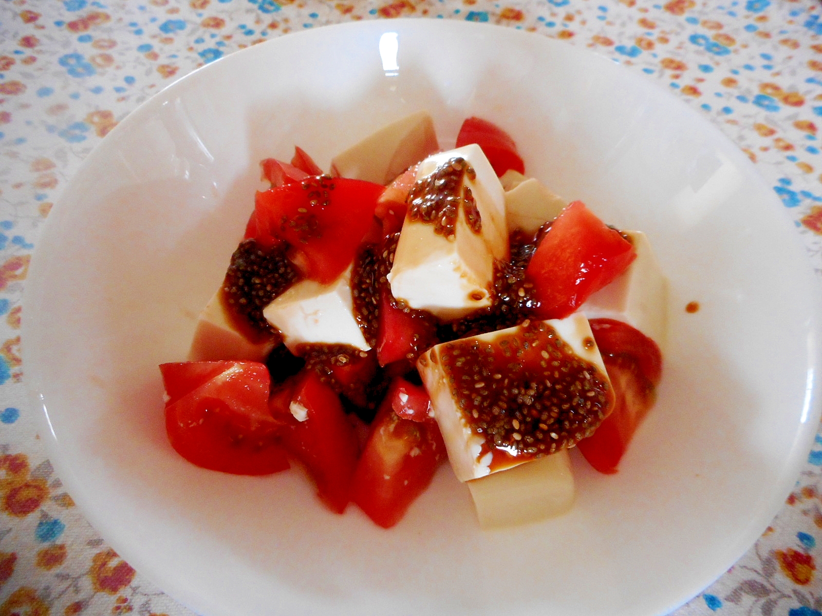 豆腐とトマトのチアシード黒糖醤油 レシピ 作り方 By Mococo05 楽天レシピ