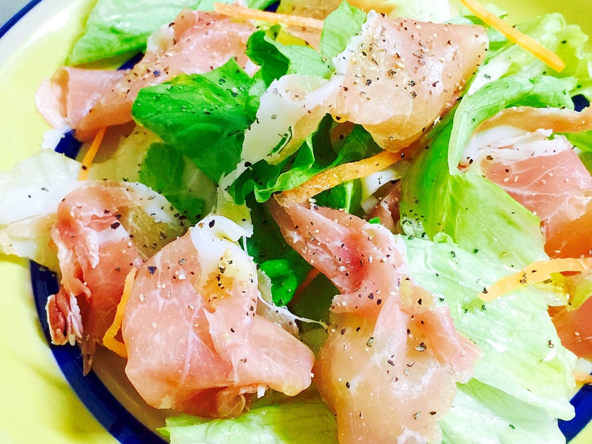 5分で完成 生ハムとレタスの簡単おつまみサラダ レシピ 作り方 By Toytoy Saori05 楽天レシピ